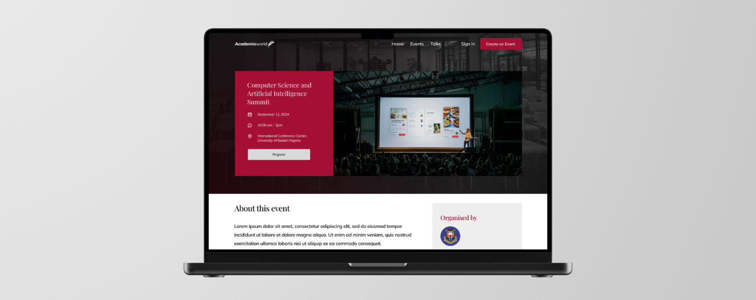 Academia World is an innovative event platform designed to serve academics by enabling them to create and share events online, manage registrations, and showcase academic talks. The platform aims to enhance collaboration and knowledge sharing in the academic community.
